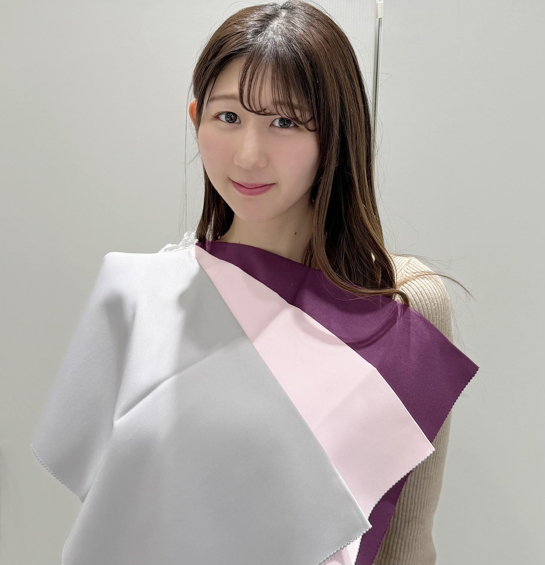 これらの色をあてると、お肌の白さが際立つだけでなく、凛とした気品と大人な魅力が引き立ち、本当によくお似合いでした。